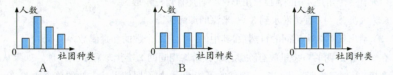 (1) 用条形统计图表示各类社团学生的人数,应选择图(