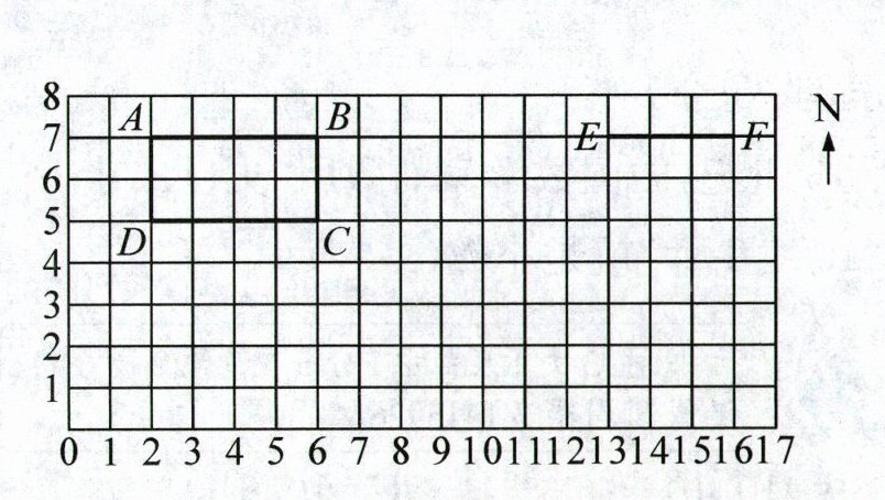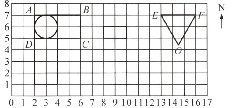 (4)运用所学知识,在图中画出点 O 的位置,连接 EO 和 FO,使三角形 EFO 成为一个等边三角形。如果方格纸中每个小方格的边长表示 1 厘米,那么点 O 的位置在点 E 的(