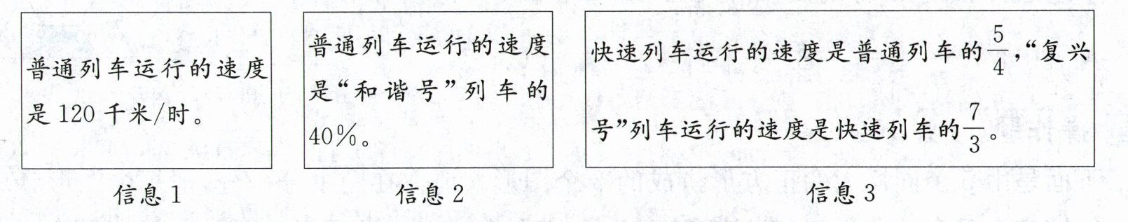 (2)要求“复兴号”列车的运行速度,需要用到上面的信息(