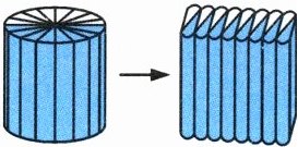 2. 如图,一个圆柱切成若干等份,拼成一个近似的长方体后,(