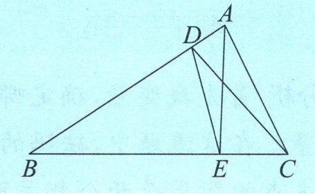 例 新素养 几何直观 如图,在三角形 $ ABC $ 中,三角形 $ BDE $,三角形 $ DCE $ 和三角形 $ ADC $ 的面积分别是 $ 90 $ 平方厘米,$ 30 $ 平方厘米和 $ 28 $ 平方厘米。三角形 $ ADE $ 的面积是多少平方厘米?