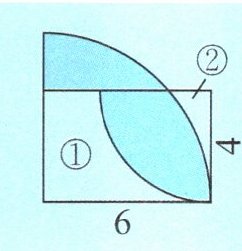 方法 2:$3.14×4^{2}×\frac{1}{4}+3.14×6^{2}×\frac{1}{4}-6×4 = 16.82$(平方厘米)