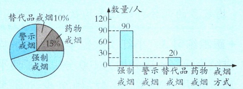 (2)$90÷200 = 45\%$ $1 - 10\% - 15\% -$ $45\% = 30\%$ 答:支持强制戒烟的占 $45\%$,支持警示戒烟的占 $30\%$。