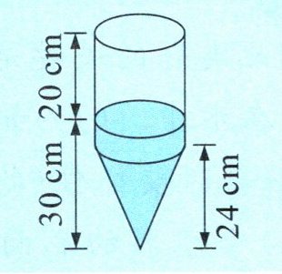 跟踪练习2 如图是一个装有一些水的密封容器。如果将这个容器倒置,那么从圆锥的尖端到水面的高度是多少厘米?
