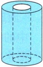 现在来考虑圆柱形铁块没有全部浸在水中时,水面上升的高度。把圆柱形铁块垂直放入玻璃杯中,水所覆盖的底面积是玻璃杯的内底面积与圆柱形铁块的底面积之差,即 $15 - 3 × 1^2 = 12 (\mathrm{cm}^2)$。而水的体积是不变的,即 $15 × 3 = 45 (\mathrm{cm}^3)$。这时只要考虑水的体积,此时水的形状如图,水的底面是一个环形,这个空心圆柱的体积就是水的体积,用水的体积除以水的底面积就可以求出圆柱形铁块放入水中后,水面的高度是 $45 ÷ 12 = 3.75 (\mathrm{cm})$,所以水面上升了 $3.75 - 3 = 0.75 (\mathrm{cm})$。