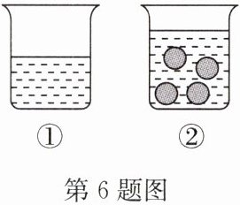 6. (2024·启东期末)如图①,一个容量为 500 cm³的杯子中装有 200 cm³的水,将四颗相同的玻璃球放入这个杯中,结果水没有满,如图②. 设每颗玻璃球的体积为$x$ cm³,根据题意可列不等式为(