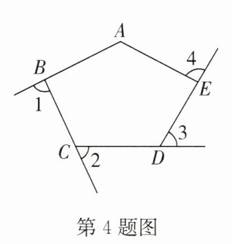 4. (2024·丹阳模拟)如图,在五边形 ABCDE 中,∠A = 125°,则∠1 + ∠2 + ∠3 + ∠4 的度数是