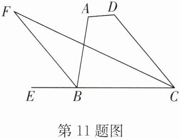 答案:11. 解: (1) $ \because ∠ ABC = 80^{\circ}, \therefore ∠ ABE = 180^{\circ} - 80^{\circ} = 100^{\circ} $.