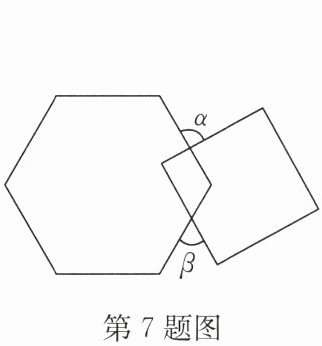 7. (2025·自贡)如图,正六边形与正方形的两邻边相交,则 α + β =(