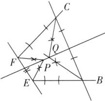 我们都知道:三角形的三个内角的平分线交于一点;两个外角的平分线与第三角的平分线也交于一点.如图,从墙$EF$边上引两条不平行的射线$EB$,$FC$(交点在墙$EF$的另一侧,画不到),请用三种方法作出这两条射线所形成角的平分线.