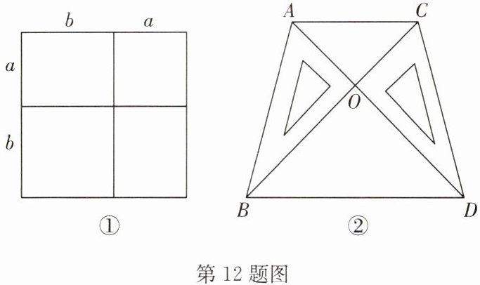 12. (12 分)(2024·高邮期中)知识生成:我们已经知道,通过计算几何图形的面积可以表示一些代数恒等式.例如,由图①可以得到$(a + b)^{2}=a^{2}+2ab + b^{2}$,基于此,请解答下列问题: