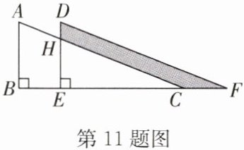 11. 如图,将直角$△ ABC$沿着$BC$方向平移得到直角$△ DEF$,$AB = 8$,$BE = 5$,$DH = 2$.