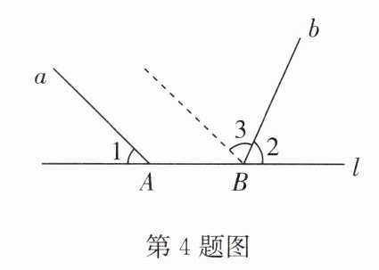 4. (2024·南通期中)如图,射线 a,b 分别与直线 l 交于点 A,B,$∠1=44^{\circ },∠2=66^{\circ }$,将射线 a 沿直线 l 向右平移至经过点 B 时,$∠3$的度数是