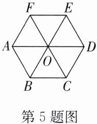 5. 如图,在正六边形 ABCDEF 中,$△ AOF$经过平移能够与哪些三角形重合?