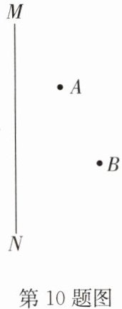 10. (2024·南京期中)如图,要在公路 $ MN $ 上建一个快递点 $ P $,使得 $ P $ 到 $ A $ 村,$ B $ 村的距离之和最小,请在图中画出 $ P $ 的位置. (保留作图痕迹,不写作法)