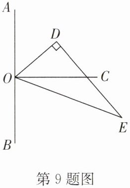 9. (2024·靖江期末)如图,点O在直线AB上,OC⊥AB,在△ODE中,∠ODE=90°,∠EOD=60°,先将△ODE的一边OE与OC重合,然后绕点O按顺时针方向旋转,当OE与OB重合时停止旋转.