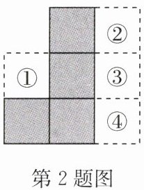 2. (2024·高新区月考)如图,阴影部分是由 4 个完全相同的正方形拼接而成的,若要在①②③④四个区域中的某个区域处添加一个同样的正方形,使它与阴影部分组成的新图形是中心对称图形,则这个正方形应该添加在(