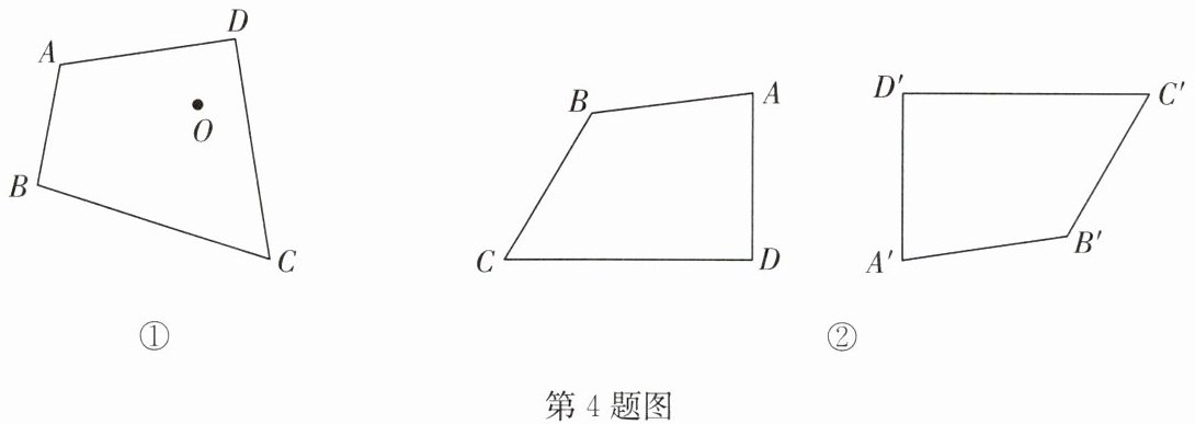 4. (1)如图①,已知四边形 ABCD 以及点 O.求作:四边形 A'B'C'D',使得四边形 A'B'C'D'与四边形 ABCD 关于点 O 成中心对称;