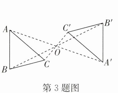 3. (2024·宜兴期中)如图,△ABC 与△A'B'C'关于点 O 成中心对称,有以下结论:①点 A 与点 A'是对称点;②BO = B'O;③AB//A'B';④∠ACB = ∠C'A'B'.其中正确的是