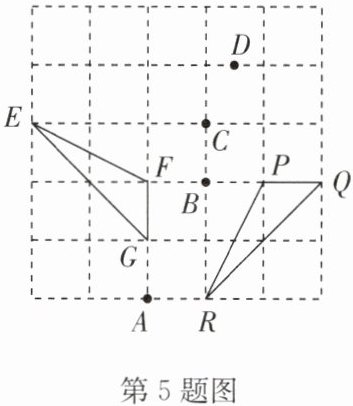5. (2024·泰兴期末)如图,在正方形网格中,$△ EFG$ 绕某一点旋转某一角度得到 $△ RPQ$,则旋转中心是 (