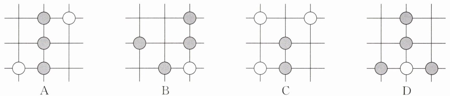 2. (2024·惠山区期中)围棋起源于中国,古代称之为“弈”,至今已有四千多年的历史,下列由黑白棋子摆成的图案是轴对称图形的是 (