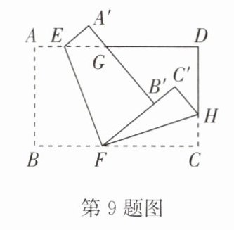 9. (2024·中山区期末)折纸是一门古老而有趣的艺术. 如图,小明在课余时间拿出一张长方形纸片 $ABCD$,他先将纸片沿 $EF$ 折叠,再将折叠后的纸片沿 $FH$ 折叠,使得 $FC'$ 与 $FB'$ 重合,展开纸片后测量发现 $∠ AEF = 110^{\circ}$,则 $∠ DHC' =$
