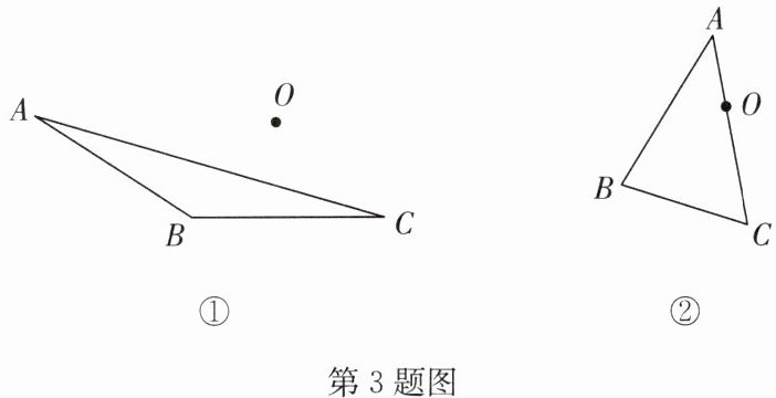3. (1)如图①,画出将 $△ ABC$ 绕点 $O$ 按顺时针方向旋转 $90^{\circ}$ 后的对应三角形;