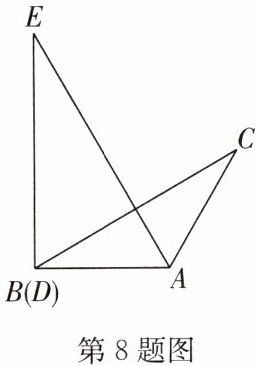 8. (2024·淮安区期中)如图,在△ABC 中,∠C = ∠ABC = 30°,△ADE 是直角三角形,∠ADE = 90°,∠E = 30°,且边 AB 与 AD 重合,将△ADE 绕点 A 以每秒 5°的速度按顺时针方向旋转一周,在旋转的过程中,第