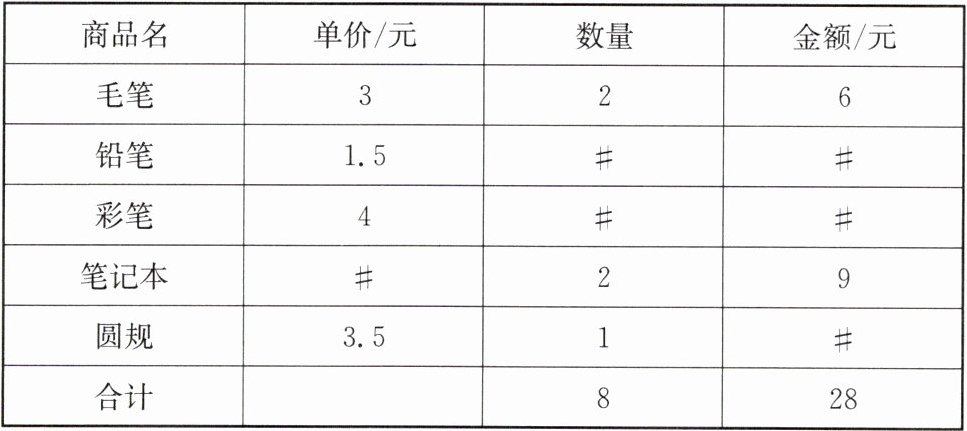 14. (16 分)(2024·玄武区月考)小明购买学习用品的收据如下表,因被涂污导致部分数据无法识别.