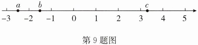 9. (2024·烟台)有理数 $a$,$b$,$c$ 在数轴上的位置如图所示,下列结论正确的是(