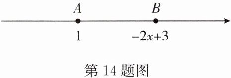14. 如图, 在数轴上, 点 $ A, B $ 分别表示数 $ 1, - 2x + 3 $.