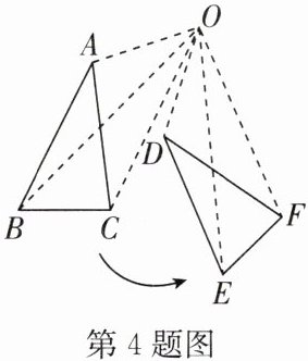 4. 如图,将$△ ABC$绕点$O$按逆时针旋转得到$△ DEF$.