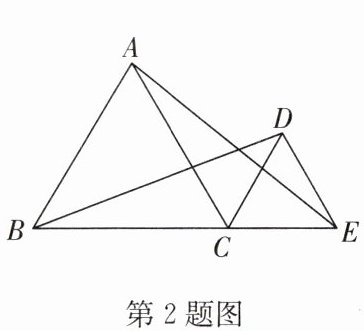 2. 如图,$△ ABC$和$△ DCE$都是等边三角形,点$B$,$C$,$E$在一条直线上,则$△ ACE$绕点$C$逆时针旋转