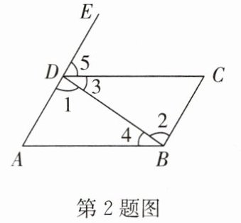 2. (2024·大丰区期中)如图,下列条件:①$∠ 1=∠ 2$;②$∠ 3=∠ 4$;③$∠ A+∠ ABC=180^{\circ}$;④$∠ A=∠ 5$。其中能判定$AB// DC$的条件有(