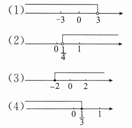 答案:1. (1) $x < 3$ (2) $x > \frac{1}{4}$ (3) $x ≥ -2$ (4) $x ≤ \frac{1}{3}$