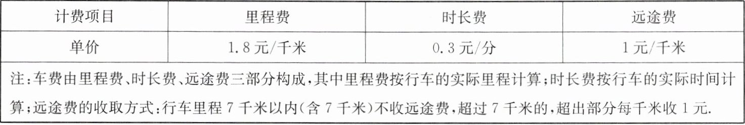 小王与小张各自乘坐快车,行车里程分别为 6 千米与 8.5 千米,如果下车时两人所付车费相同,那么这两辆快车的行车时间相差(