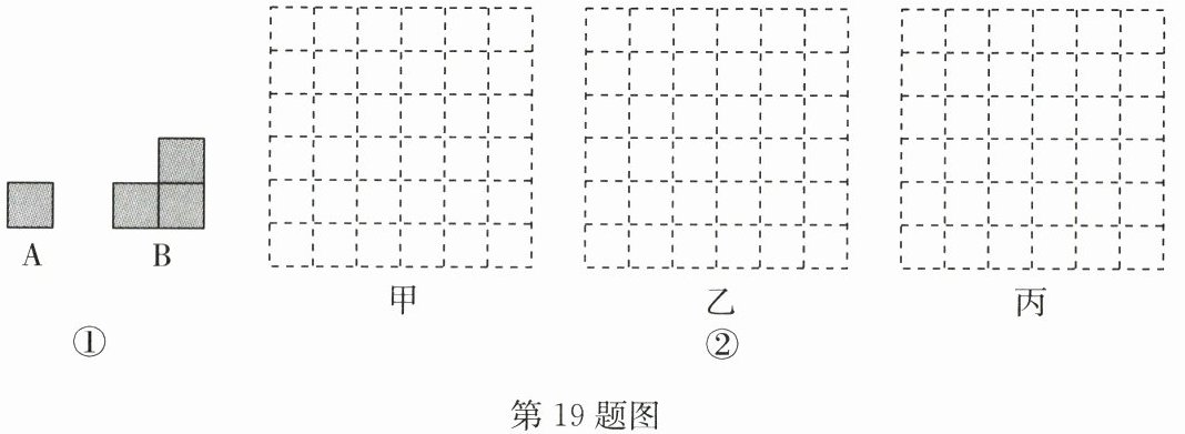 19. (9分)(2024·姜堰区期中)如图①,图形A是一个正方形,图形B由三个图形A构成,请用图形A与B拼接出符合要求的图形(每次拼接图形A与B只能使用一次),并分别画在图②的网格中.