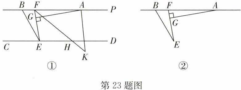 23. (12分)(2024·姑苏区期中)(1)如图①,AB//CD,点E,F分别在直线CD,AB上,∠BEC=3∠BEF,过点A作AG⊥EF交EF于点G,FK平分∠AFE,AK平分∠PAG,FK与AK交于点K.