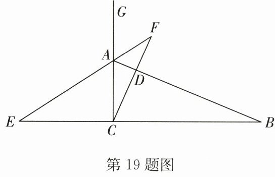 19. (12分)(2024·泰兴期中)如图,在△ABC中,∠ACB=90°,点D在边AB上,点E在BC的延长线上,射线EA与射线CD相交于点F,∠BAG是△ABC的外角.