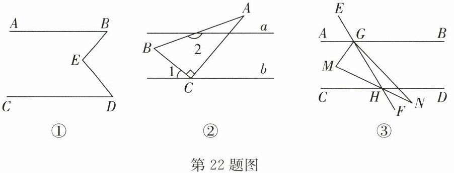 答案:22. (1)证明:过点$ E $作$ ET // AB $,如答图①。