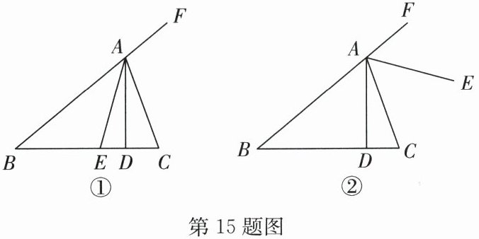 15. (12分)如图①,在$△ ABC$中,$AD$是高,$AE$是$∠BAC$的平分线,$∠ABC = 40^{\circ}$,$∠ACB = 70^{\circ}$.