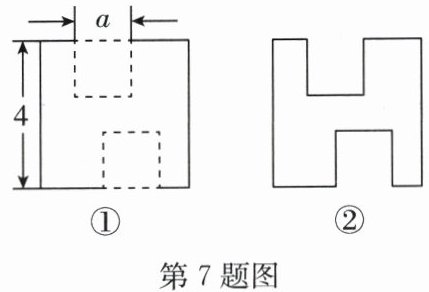 7. (2024·海陵区月考)如图①,从一个边长为 4 的正方形纸片中剪掉两个边长为 $ a $ 的正方形得到如图②所示的图形,若图②的周长为 22,则 $ a $ 的值为