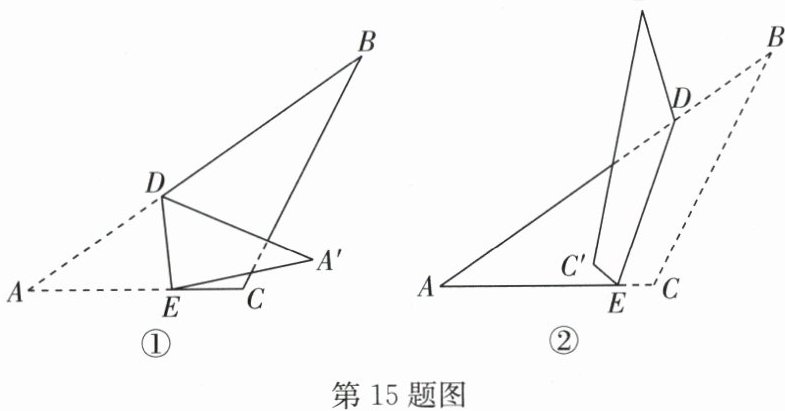 (1)如图①,点 $ A $ 的对应点为 $ A' $,若 $ ∠ CEA'=30^{\circ} $,求 $ ∠ A'DB $ 的度数;