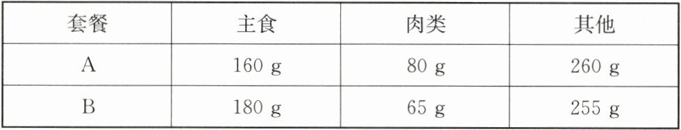 表二:学校每天提供的 $A$,$B$ 两种套餐