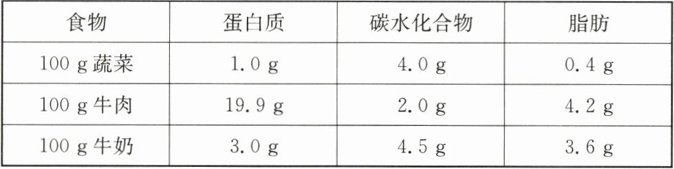 (1)若一份早餐包含一份 $150g$ 的蔬菜,一份 $100g$ 的牛肉和一份 $200g$ 的牛奶,则该份早餐中蛋白质总含量为