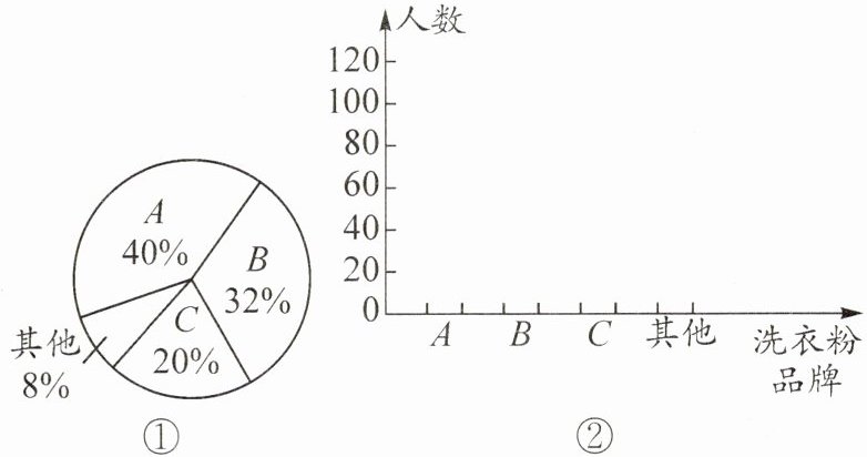 (1)在图②中,将最近一次购买各品牌洗衣粉的人数情况绘制成条形统计图;