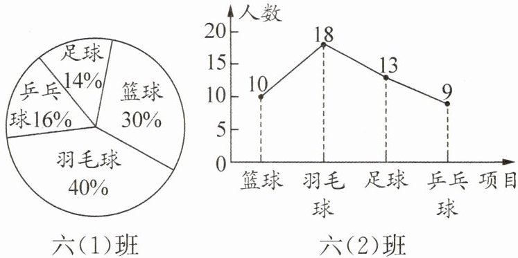 A.六(1)班喜欢乒乓球的人数比六(2)班多