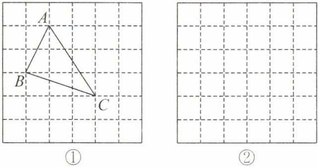 答案:(1)$\frac{7}{2}$ 解析:由题图①,得$S_{\triangle ABC}=3 × 3-\frac{1}{2} × 1 × 2-\frac{1}{2} × 1 × 3-\frac{1}{2} × 2 × 3=\frac{7}{2}$.