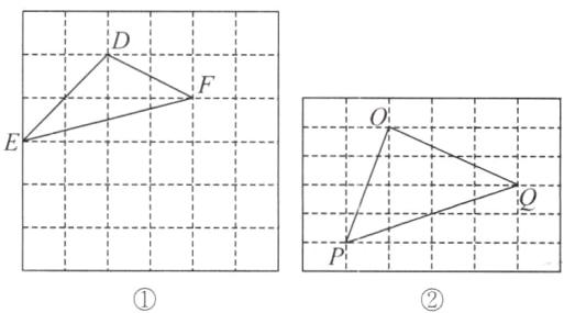 (2)我们把上述求$\triangle ABC$面积的方法叫作构图法. 如果$\triangle DEF$三边的长分别为$\sqrt{5}a$,$\sqrt{8}a$,$\sqrt{17}a$($a>0$), 请利用图②的正方形网格(每个小正方形的边长为$a$)画出相应的$\triangle DEF$, 并求出它的面积;