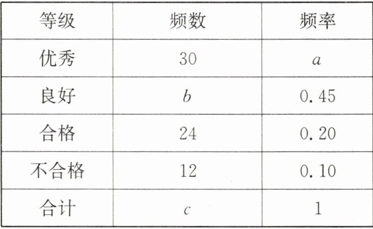 (3)由(1),得a=0.25,则估计测试成绩等级在“良好”及以上的学生有2400×(0.25+0.45)=1680(名).